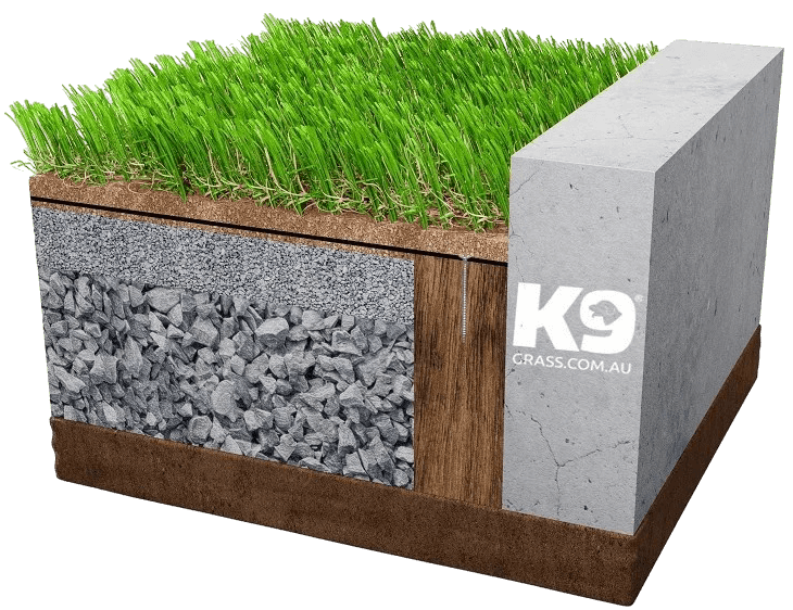 Synthetic Grass can be installed in various methods on top of various surfaces. When it is installed over a crushed rock and crusher dust base, the industry standard to secure the grass, there should be a nail or a peg every 30cm – 40cm. However being an industry expert for many years, we have experienced what damages a dog can cause to a beautiful synthetic lawn with their paws. Hence, we have invented our exclusive K9 Turf Lock system to secure the grass further to the base. This system ensures extra strength to secure the grass to the base, which will reduce any damages that can caused by digging dogs.